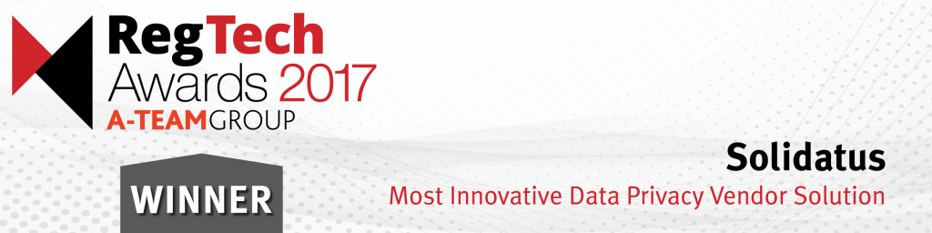 London, UK – 20 November 2017 – Solidatus, a leading data lineage discovery and visualisation solution, has been named the “Most Innovative Data Privacy Vendor Solution” at the inaugural RegTech Awards. The awards recognised start-up and established RegTech solutions and service providers. The winners were announced during a ceremony at the close of the 2017 RegTech Summit for Capital Markets in New York on 16th November 2017. The summit was organised by the A-Team Group and brought together a community of practitioners managing regulatory change and implementing RegTech solutions.