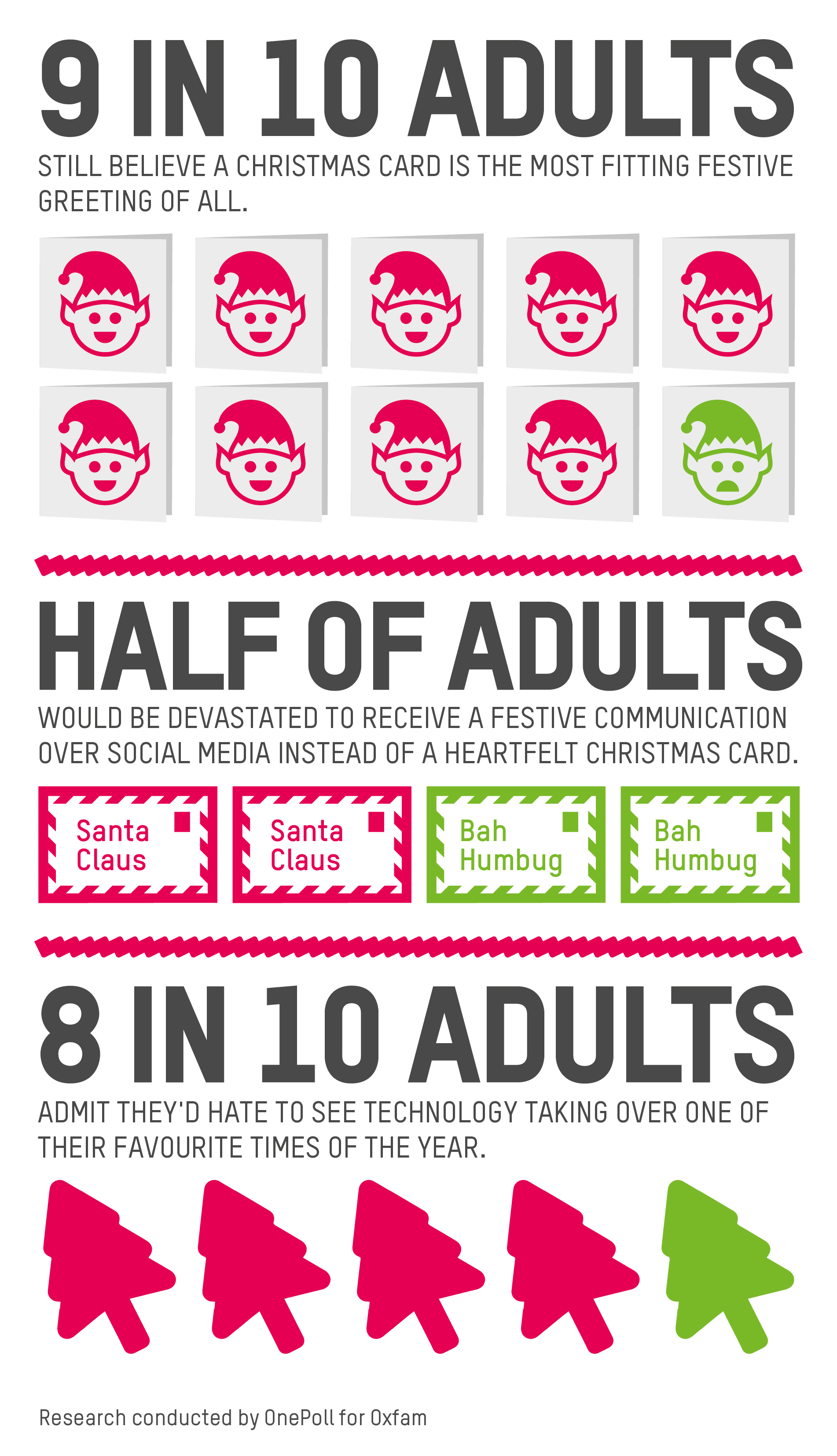 Half of adults polled in the Oxfam study would be devastated to receive a festive communication over social media instead of a heartfelt Christmas card.