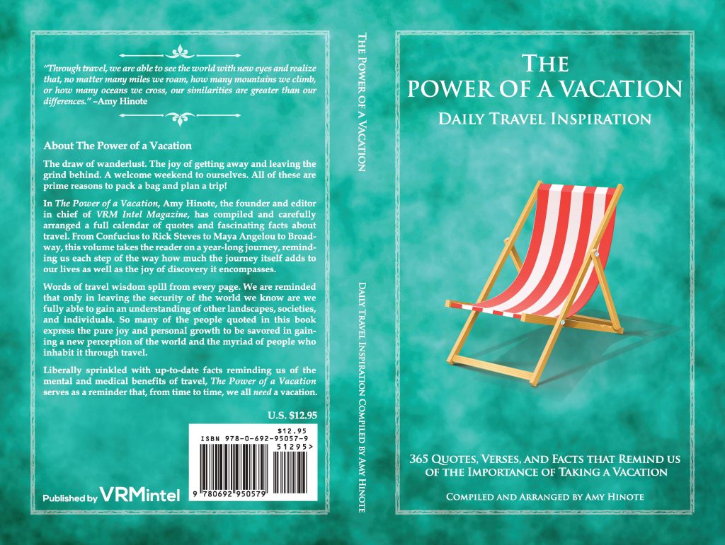 The book is a yearlong calendar compilation of quotes, fascinating facts, excerpts from studies, song lyrics, and more about the importance of taking a vacation. From Confucius to Rick Steve’s to Maya Angelou to Ernest Hemingway, The Power of a Vacation takes the reader on a yearlong journey, reminding him or her each step of the way how much the journey itself adds to one’s life and enhances the joy of discovery.