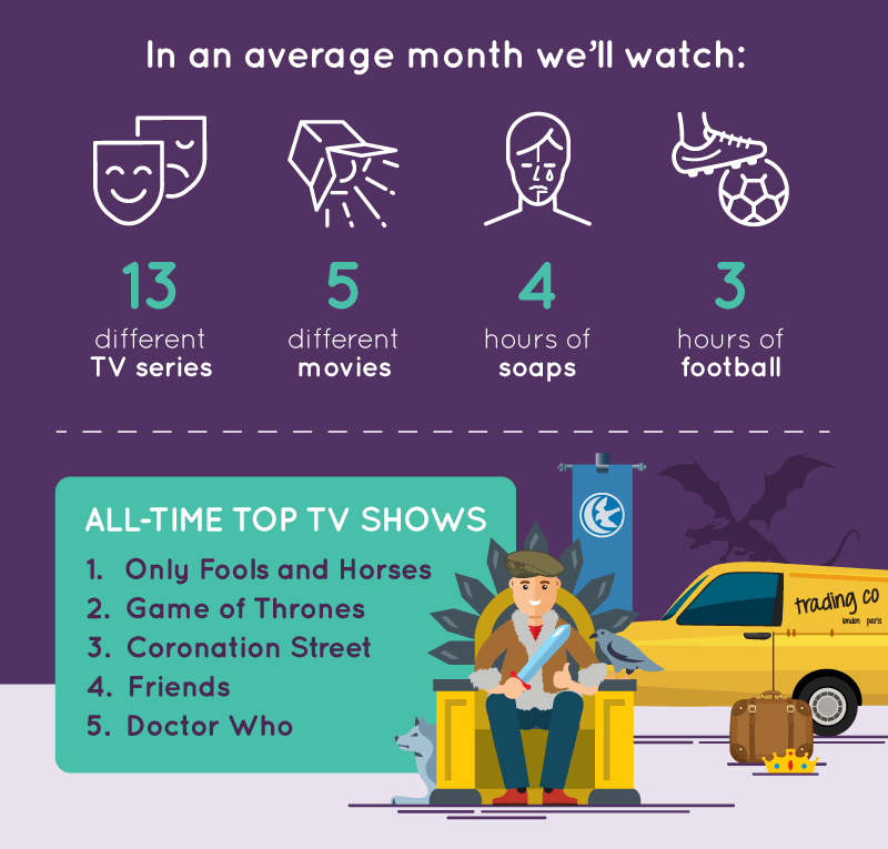 In an average month, we will sit down to watch 13 different TV series, with British dramas, US dramas and documentaries the most popular.