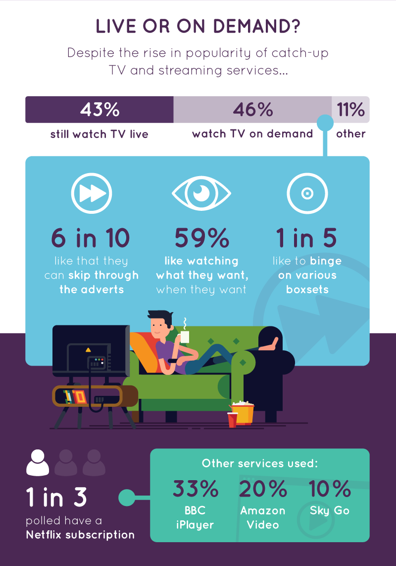 And despite the rise in popularity of catch-up TV and streaming services, 43 per cent still prefer to watch TV live.