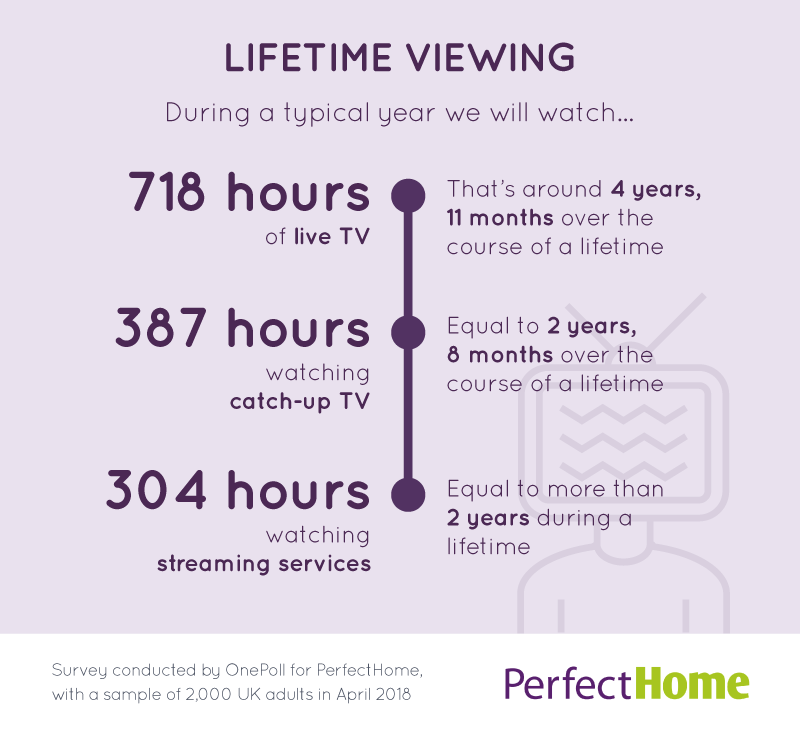 During a typical year, participants in the study spent a total of 718 hours watching live TV – that equates to just under five years over the course of their lifetime.