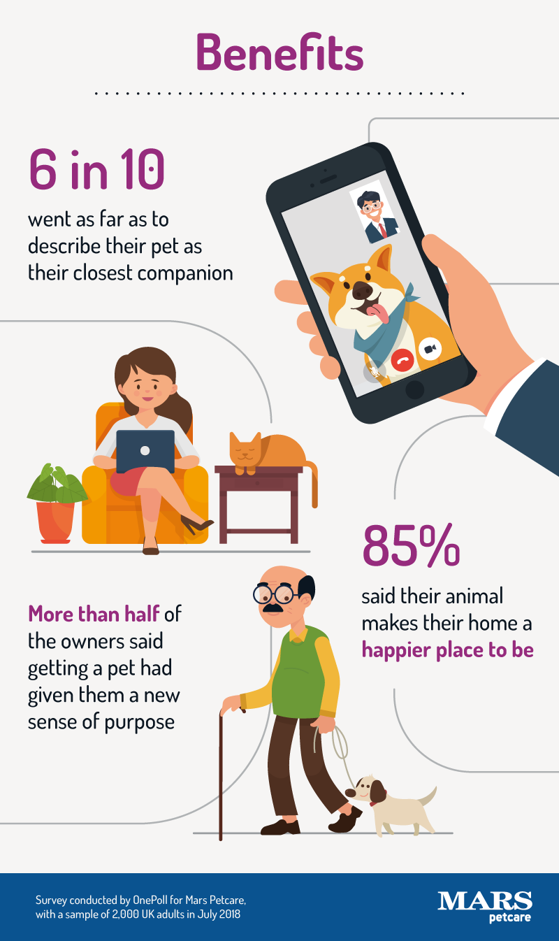 More than half of owners said getting a pet had given them a new sense of purpose, while 62 per cent of those with a dog said they do more exercise than they would if they didn’t have a canine chum.