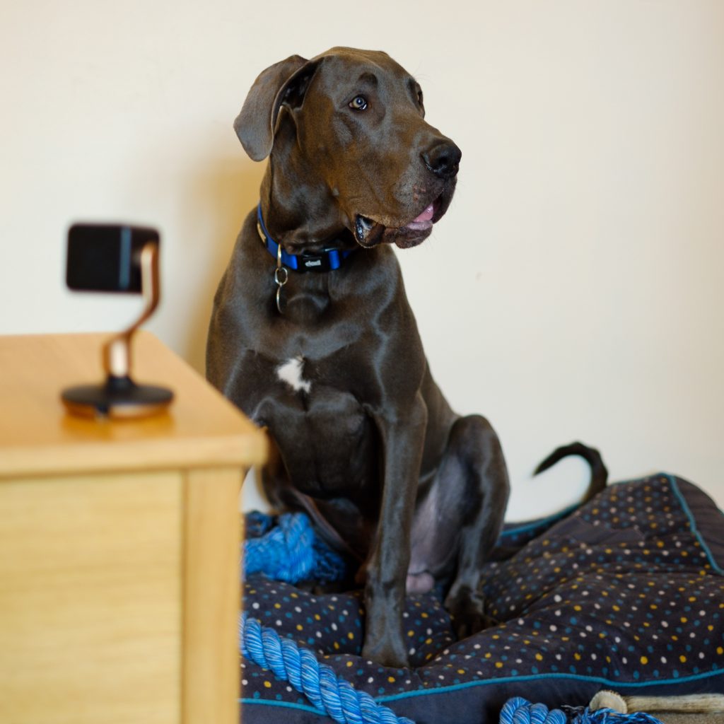 Ashley Phillips, 24, from London is the owner of her dream dog, Elvis the Great Dane, and uses the Hive View camera to stay connected and reassure her new bundle of four-legged fur when she’s not around.