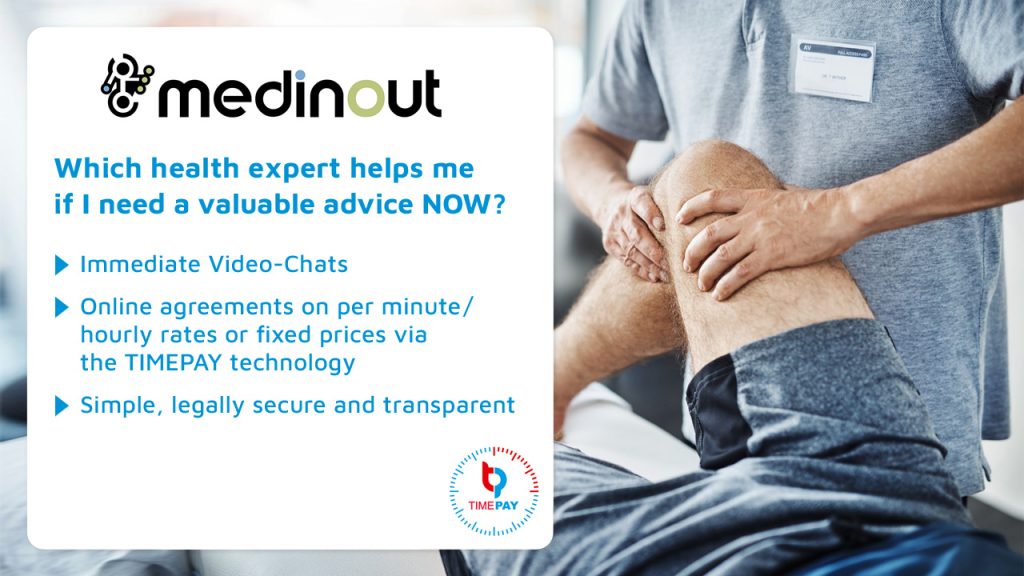 The patent-pending TIMEPAY technology will be integrated in the medinout beta version via link and in the final version as a module in the members area. For the first time, the TIMEPAY video chat on an online health platform offers patients, health care professionals, physicians, therapists and all other health professionals the opportunity to directly exchange with and advise on registered therapeutic experts in all disciplines. In this way, not only the telemedical dialogue is possible, but also a legally compliant direct billing of the service is provided.