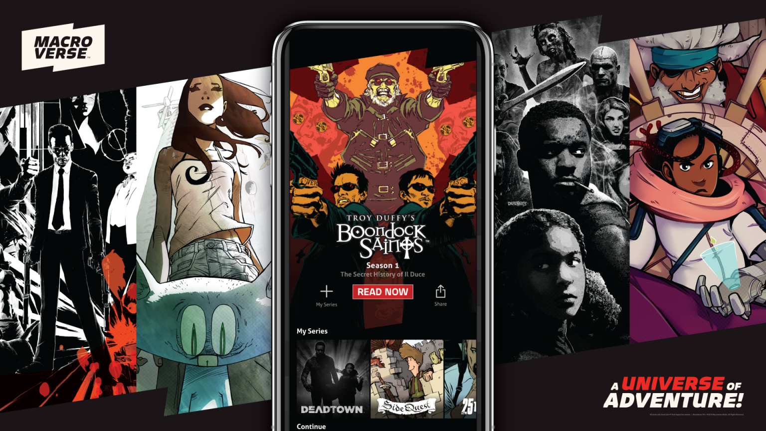 Comics and entertainment fans can download Macroverse for iOS or Android right now. The first episode of every series, along with the entire first season of DeadTown, is free to read! Unlimited access is available for $4.99 per month with a seven-day free trial.