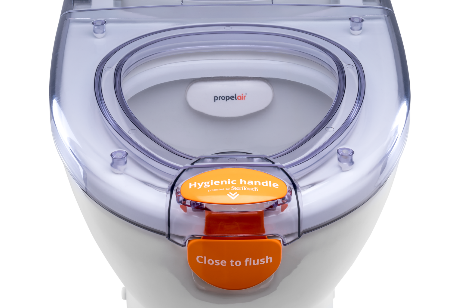 Using just 1.5 litres of water and a high-speed jet of air, Propelair leaves the pan super-clean with one no-touch flush. Its distinctive air-sealed action locks aerosolised germs and with its SteriTouch® handle, minimises infection risk. A study by the Centre for Research into Environment and Health (CREH) found Propelair reduced aerosolised bacteria by 95%.