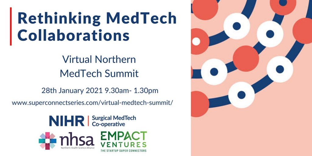 As the COVID-19 pandemic has put healthcare under unprecedented pressure, a new summit has launched to bring together leading MedTech experts and innovators to seek solutions in the sector. Rethinking MedTech Collaborations – run by the National Institute for Health Research Surgical MedTech Co-operative, Northern Health Science Alliance (NHSA) and the University of Leeds , powered by global super connectors Empact Ventures – takes place virtually on January 28, 2021.