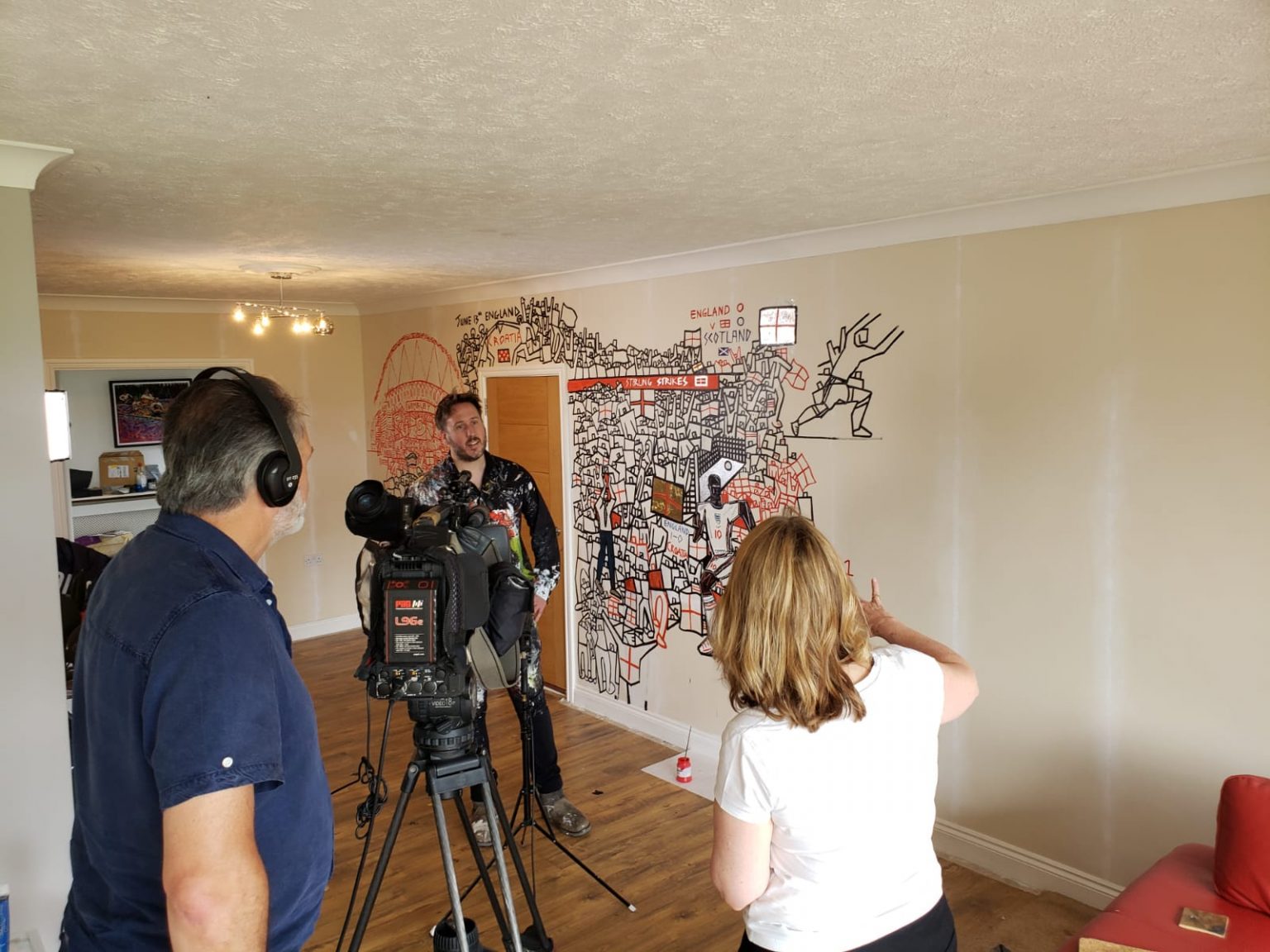 Expressionist artist, Ben Mosley – Club Wembley Artist in residence – is depicting the journey of England’s Euro 2020 campaign, with a large scale painted mural, in his very own house!