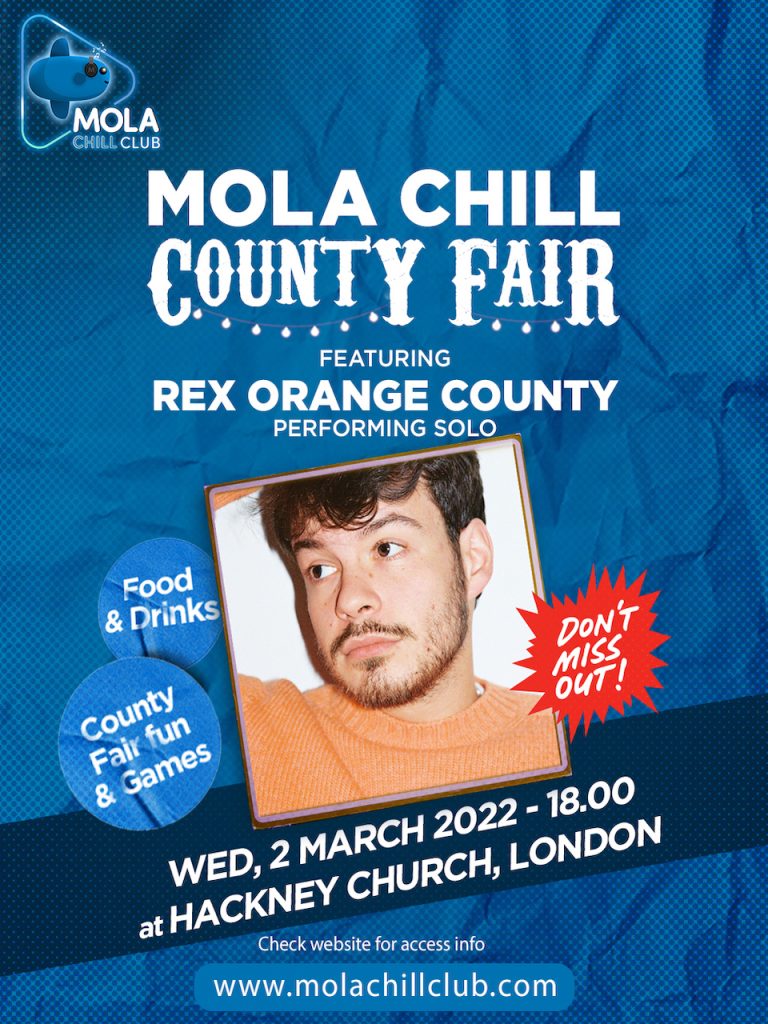 MOLA announce a huge London launch event introducing their new Private Members ‘Mola Chill Club’ on Wednesday 2nd March 2022. The ‘Mola Chill County Fair’ will take place at Hackney Church with an exclusive solo performance and Q&A from Rex Orange County. The event will also feature a huge county fair, including craft beer stalls, artisan food and fairground games. There will be a surprise magic show from a famous magician who will also be the mystery guest for the event.