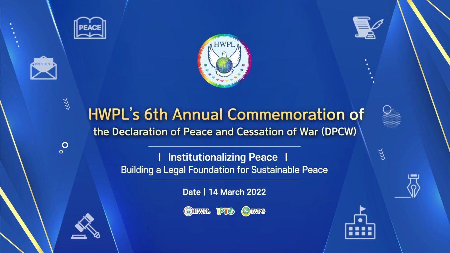 ‘HWPL’s 6th Annual Commemoration of the Declaration of Peace and Cessation of War (DPCW)’ was held online on 14 March 2022 with over 5,000 participants, under the theme Institutionalising Peace: Building a Legal Foundation for Sustainable Peace.