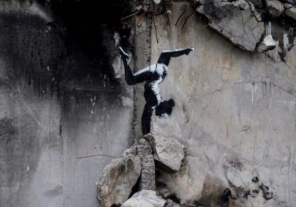 Banksy created a mural showing a gymnast balance on a …