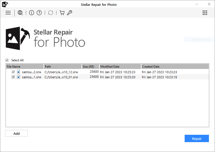 Steps to repair SRW files using Stellar Repair for Photo