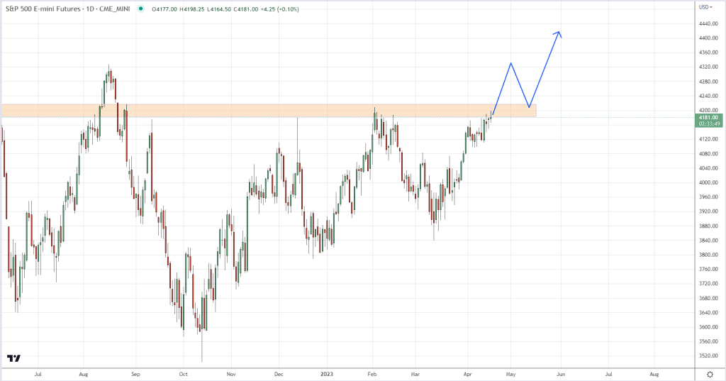 Considering that American companies have been growing steadily lately, ES reflects this growth and seeks to refresh the January high of 4200. In fact, it is in a resistance zone that has been holding for almost a whole year.
