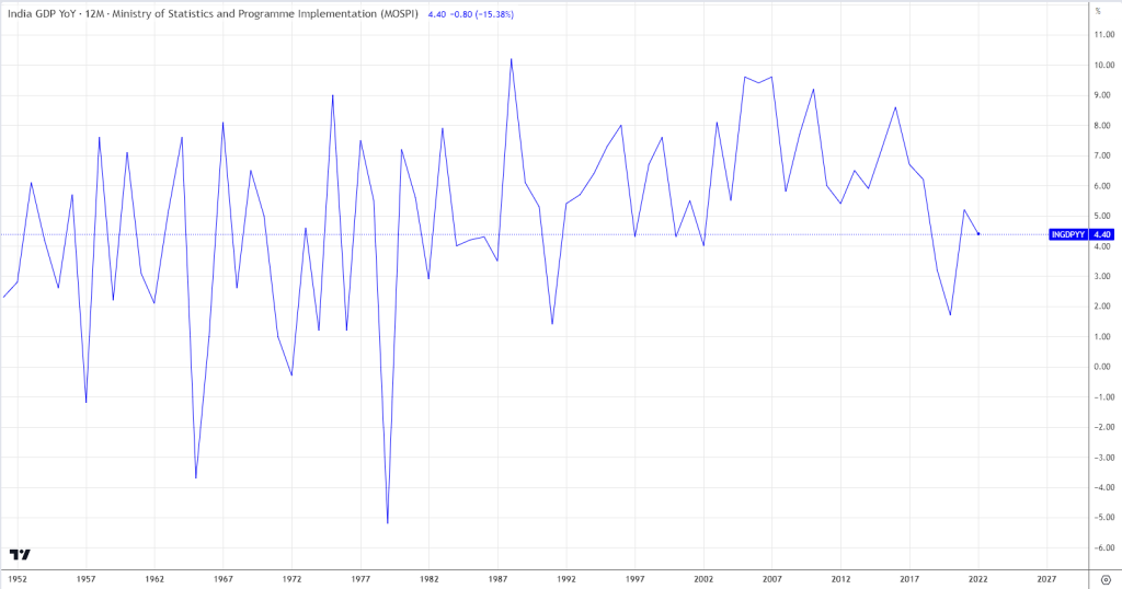By comparing the main indices of India (NSE:NIFTY) and China (SSE:000001), it becomes evident that while the latter faces challenges, the former is experiencing active growth.