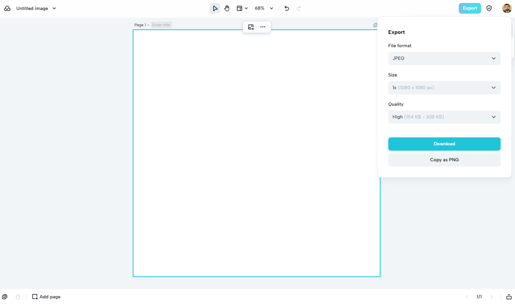 CapCut online image editor allows you to change the format, size, as well as quality of the visual before exporting it or downloading it. You can set a custom name for the image that you want to download. Options exist to change the format of the image, such as PDF, PNG, or JPEG. For qualities, multiple options exist, including low, medium, and high. You can choose any quality; please note that higher quality means higher file size. There are also different sizing options, such as 0.5x, 1x, 2x, 3x, etc. Each size of the image represents a different number of associated pixels.